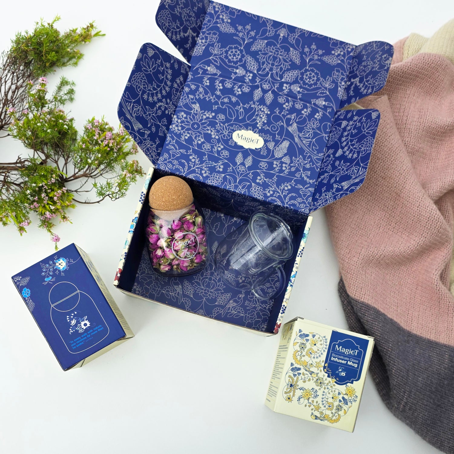 Gift Set: One Jar of Rosebuds and one Glass Infuser Mug beautifully packaged in a gift box