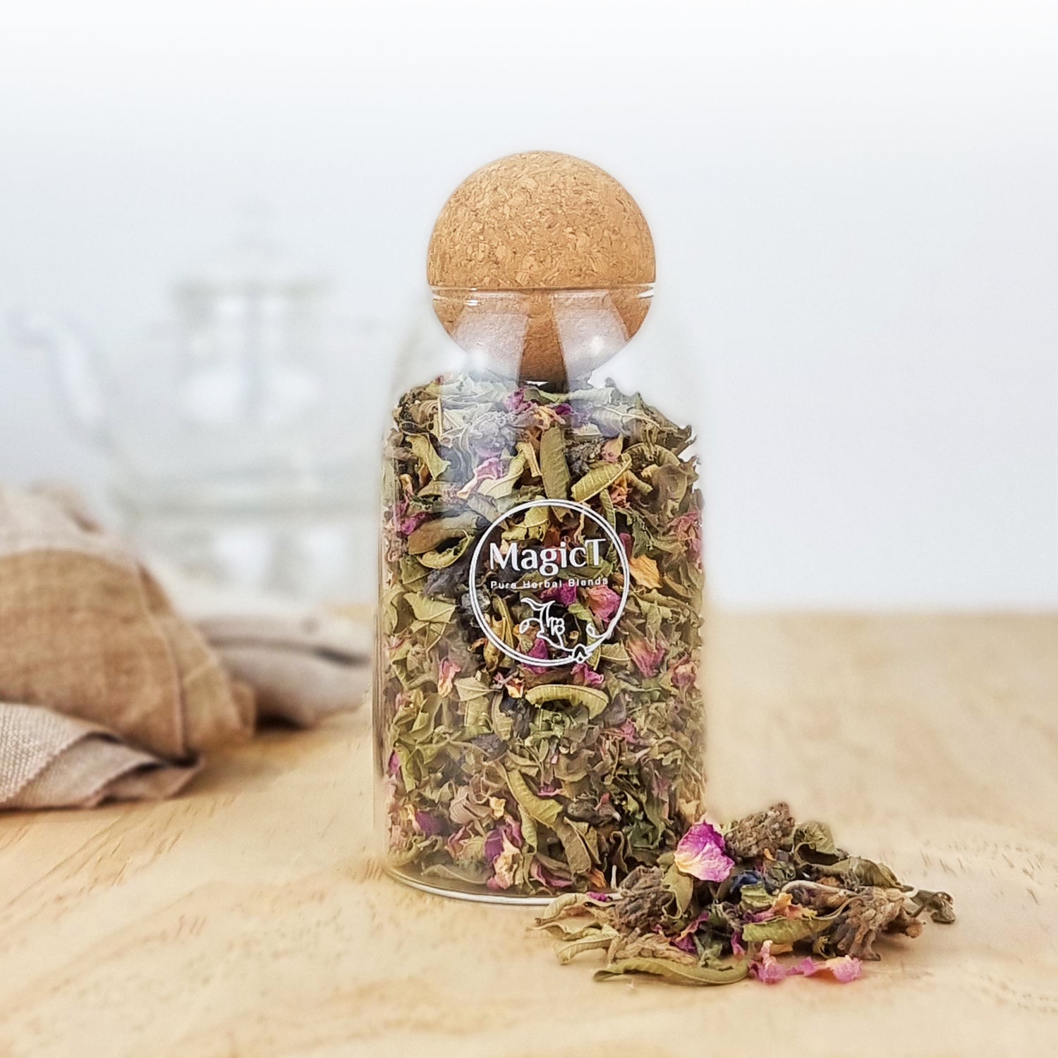 Sweet Dreams is a calming and aromatic blend of Lemon Verbena, Lemon Balm, Lavender, and Rose petals, designed to promote relaxation and improve sleep quality.